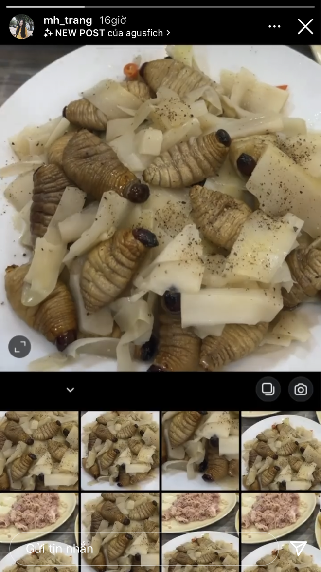 Cụ thể, cả Mai Hà Trang lẫn Doãn Hải My đã cùng nhau chụp ảnh món đuông dừa xào măng và up story ở thời gian gần nhau. Không chỉ giống nhau ở món ăn mà những chi tiết như đĩa hay bàn ăn đều y hệt.