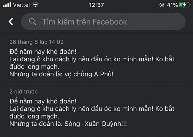 "Đề năm nay khó đoán! Lại đang trong khu cách ly nên đầu óc không minh mẫn. Nhưng ta đoán là: Sóng - Xuân Quỳnh".
