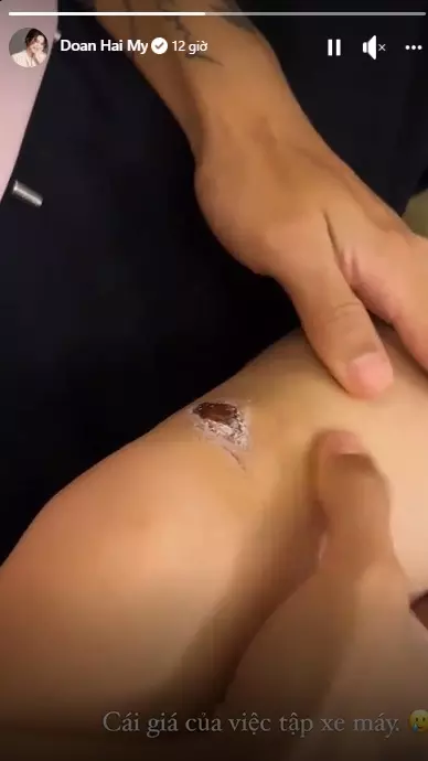 Rất nhiều người đã hỏi thăm và tò mò về chiếc đầu gối bị xây xước của cô nàng. Trong chia sẻ mới đây, Doãn Hải My đã tiết lộ lý do đầu gối bị băng bó là vì người đẹp tập xe máy và không may bị ngã.