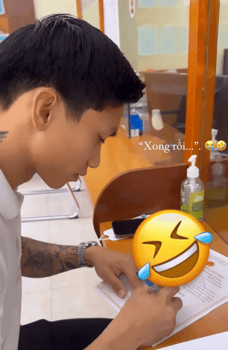 Trên trang cá nhân, Doãn Hải My ghi lại khoảnh khắc Văn Hậu đặt bút ký vào giấy ĐKKH. Nhìn hành động của chồng, cô nàng nói đùa: " Uầy! Ký dứt khoát thế!". Về phần cầu thủ nổi tiếng, sau khi cẩn thận ký cả 2 tờ rồi đưa cho vợ, anh chàng nói đúng 3 chữ: “Thôi xong rồi!".