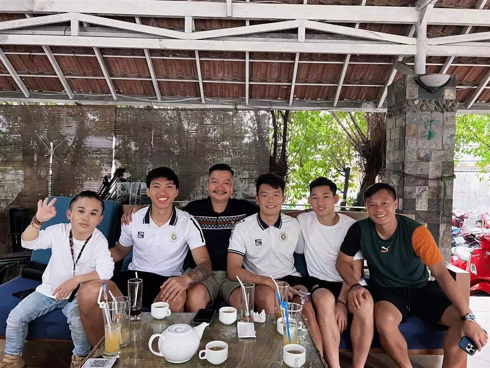 Chia sẻ về bức hình đang gây bão, Xuân Tiến cho hay có quen biết Văn Hậu và một số đồng đội khác của anh. Vừa qua nhân dịp CLB Hà Nội vào Sài Gòn thi đấu, họ đã có dịp tụ tập tại một quán cà phê.