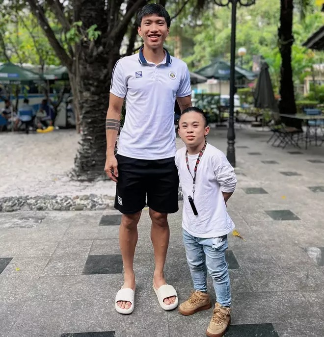 Mới đây, trên mạng xã hội liên tục lan truyền hình ảnh của Đoàn Văn Hậu bên một thanh niên có ngoại hình thấp bé.