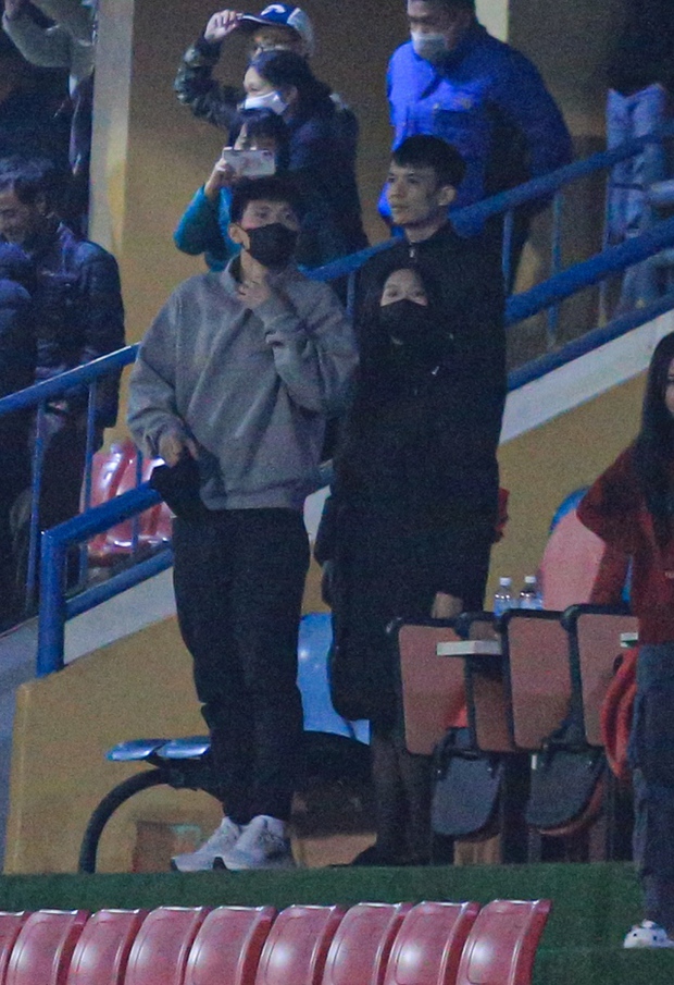 Hậu vệ Đoàn Văn Hậu có hành động tình cảm khi đưa vợ đi xem đá bóng.