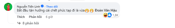 Khi bài đăng của cầu thủ đội tuyển Việt Nam được đăng tải, tất nhiên vô số lời chúc mừng từ đồng đội, bạn bè, người thân và cả người hâm mộ dành cho đôi bạn trẻ. Đáng chú ý, chính là tiền đạo Tiến Linh có bình luận: "Bắt đầu tận hưởng cái ch*t phức tạp đi là vừa" kèm biểu cảm hài hước. Tuy nhiên, bình luận của Tiến Linh lại để lại nhiều tranh cãi.