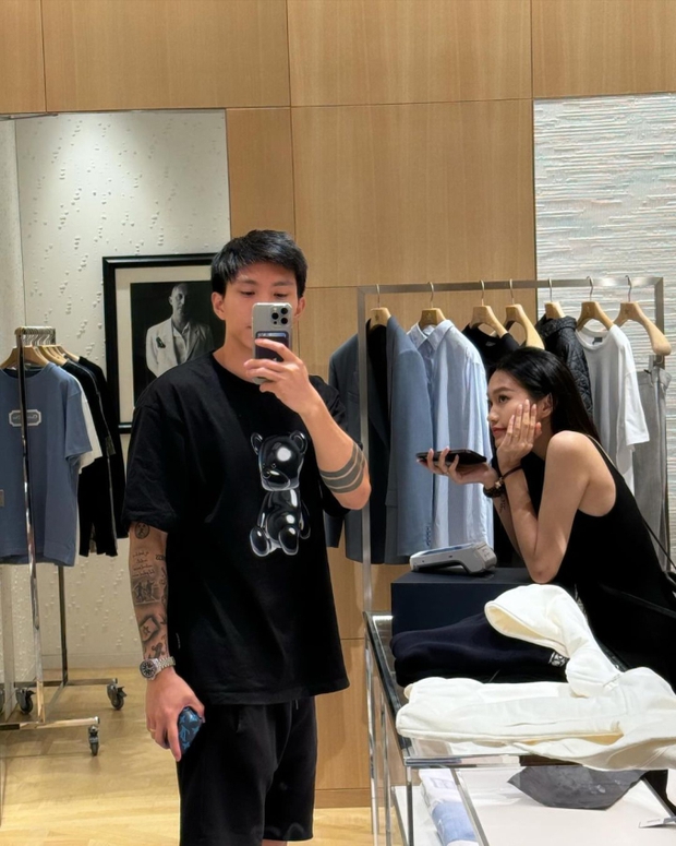 Anh chàng chủ động cầm camera selfie cùng vợ ở những nơi cặp đôi đi qua như ở khu trang trí đón giáng sinh hay trung tâm thương mại lớn. Dân mạng còn nhận ra, một số người qua đường lọt vào tấm ảnh selfie của Văn Hậu và Hải My, đang hướng ánh mắt tò mò khi thấy đôi trai tài gái sắc sánh vai bên nhau.