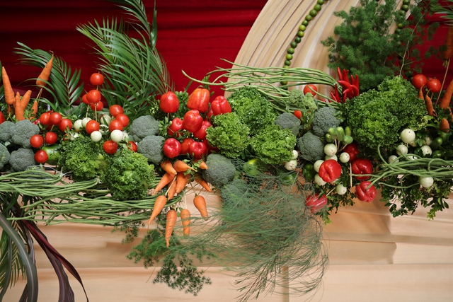 Theo anh nếu trang trí bằng hoa tươi, số tiền có thể lên tới 70 - 80 triệu đồng. Tuy nhiên, anh chỉ mất 10 triệu đồng cho toàn bộ 938kg rau củ trang trí tất cả. Ngoài ra, do gia đình anh trồng dừa nên bố mẹ cũng đã cho thêm anh chị 1.000 trái dừa đãi khách.