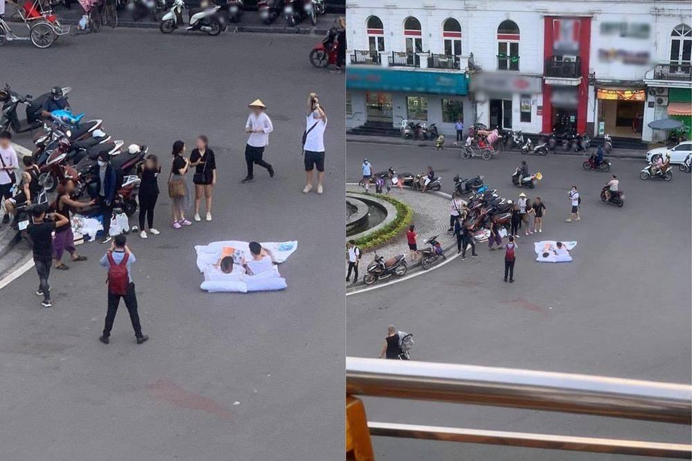 Mới đây, một số hình ảnh trên mạng xã hội về một cặp đôi trẻ đang rất thu hút cộng đồng mạng. Có thể thấy, hai nhân vật chính trong ảnh có lẽ đang thực hiện một buổi shooting ngoài trời. Mọi chuyện sẽ chẳng có gì để nói nếu phim trường của họ không phải ngay giữa đường còn đôi bạn thì... nằm dài tạo dáng.