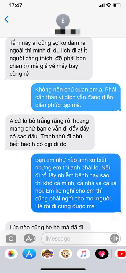 12/03/2020 17:20Đòi chia tay vì người yêu không đồng ý đi du lịch trong mùa dịch, cô gái khiến cả cộng đồng mạng lên án kịch liệt