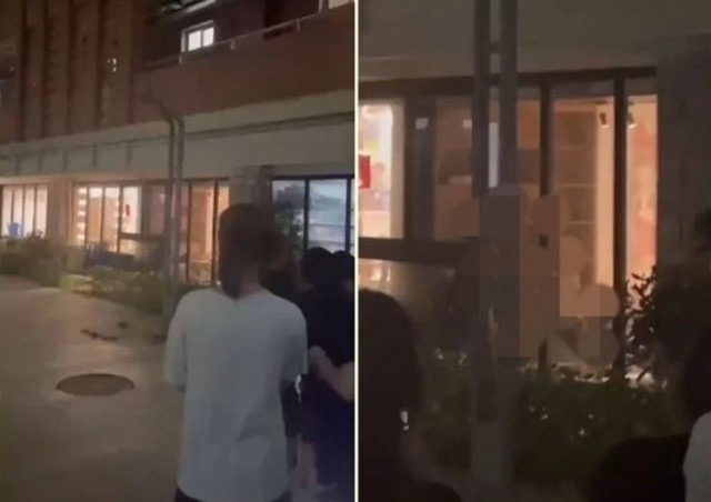 Tuy nhiên, do khi đó bên ngoài trời đã tối, bên trong căn phòng lại bật đèn sáng nên toàn bộ màn "ân ái" của cặp đôi đã bị những người xung quanh chứng kiến toàn bộ. Nhiều sinh viên đã đứng lại để quay video và chụp ảnh, thậm chí có những sinh viên ở tòa nhà khác cũng kéo tới xem. Hầu hết những sinh viên này đều tỏ ra bất ngờ, choáng váng, khó chịu và phẫn nộ trước hành động quá sức bạo dạn, phản cảm của đôi sinh viên này. Phải đến một lúc sau, đôi nam nữ mới chịu dừng lại, thu dọn quần áo rồi bỏ đi.