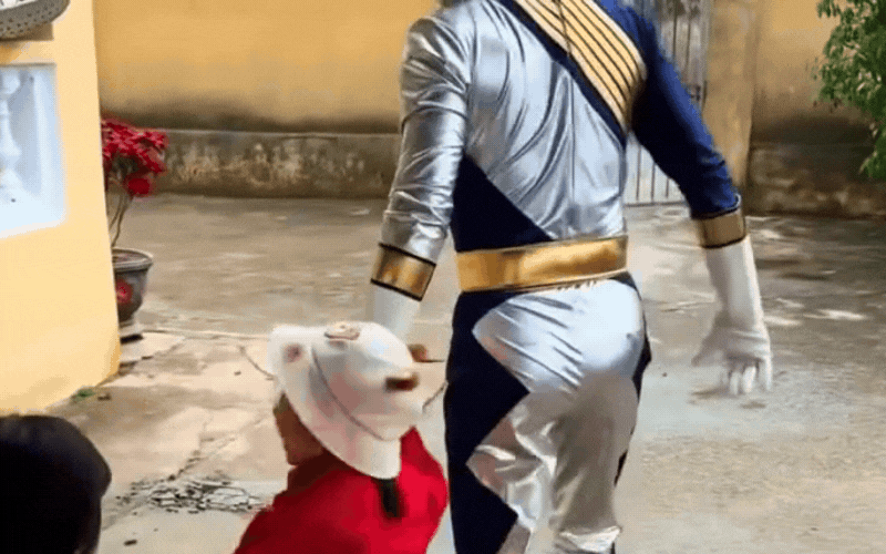 Thì ra ông bố đã hóa trang thành siêu nhân Gao bạc, một nhân vật mà bé nào cũng thích. Sở hữu chiều cao chuẩn cùng vóc dáng được nhận xét là khá đẹp, ông bố trông có vẻ rất tự tin trong bộ đồ bó sát, đúng chuẩn siêu nhân được đặt trên mạng về. Phải công nhận nhân vật trên phim với ngoài đời nhìn như 2 giọt nước, bảo sao con gái sung sướng, phổng mũi với bạn bè, cười như được mùa.