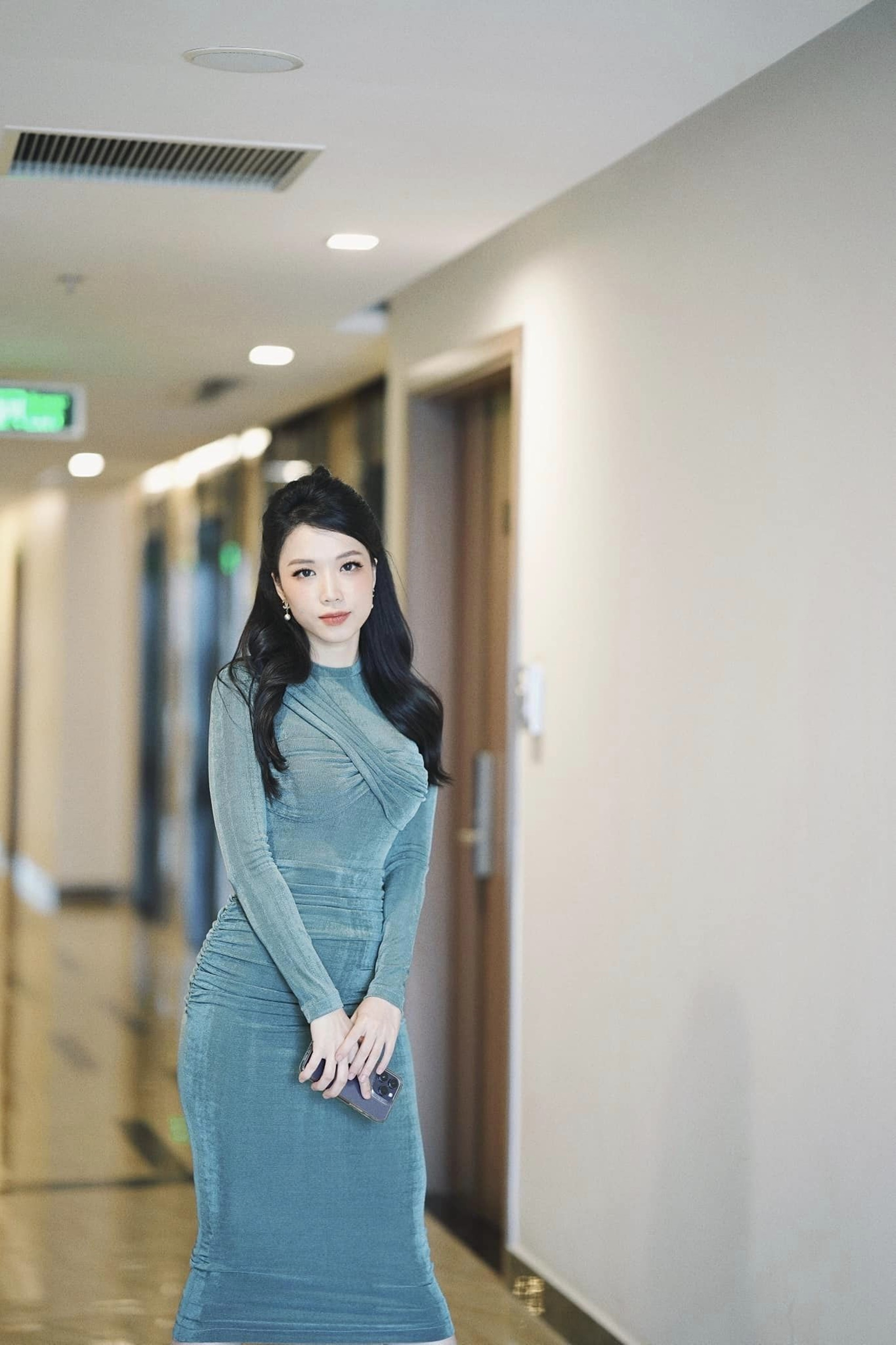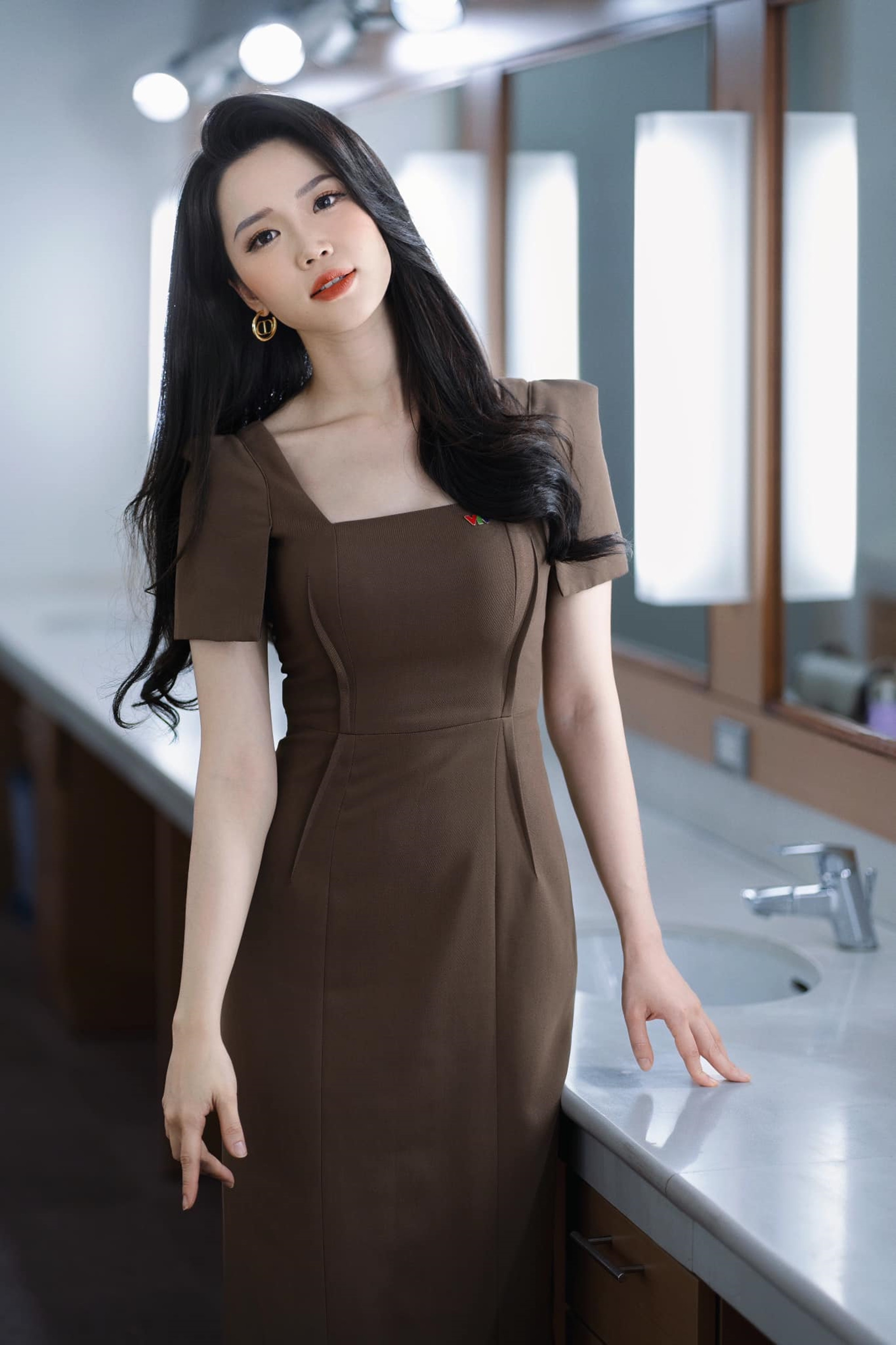 Khi không lên sóng, MC-BTV Hải Yến 'Chuyển động 24h' thường lựa chọn những bộ đầm ôm sát tôn dáng đồng hồ cát đẹp hút mắt.