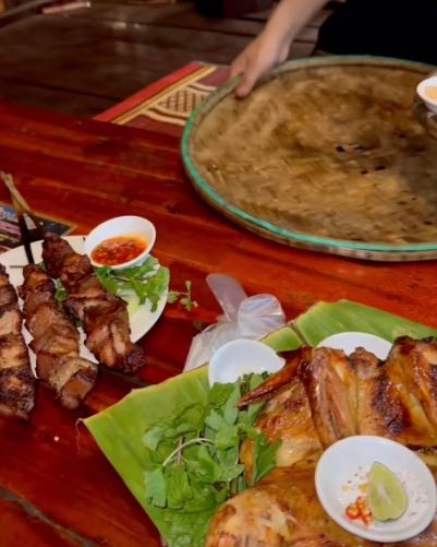 Cũng vì vậy, trong lần đầu tiên thưởng thức gà nướng, cơm la... nàng mẫu tây liền quay và chụp lại những khoảnh khắc ăn uống. Dianka thích thú khoe món ăn với cộng đồng mạng. Cô nàng cũng rất khéo léo tách ống tre để lấy cơm lam bên trong.
