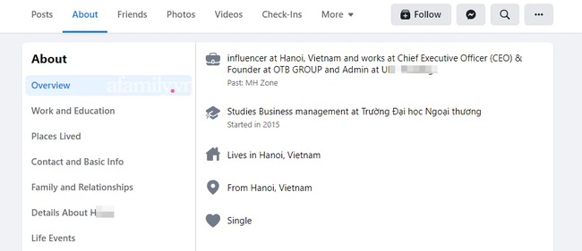 Tuy nhiên, khi bấm vào phần "tổng quát" (overview), L.M.H vẫn để nguyên chức danh CEO và người sáng lập OTB Group. Video, bài đăng liên quan đến hội nhóm này trên wall của L.M.H cũng chưa bị xóa.