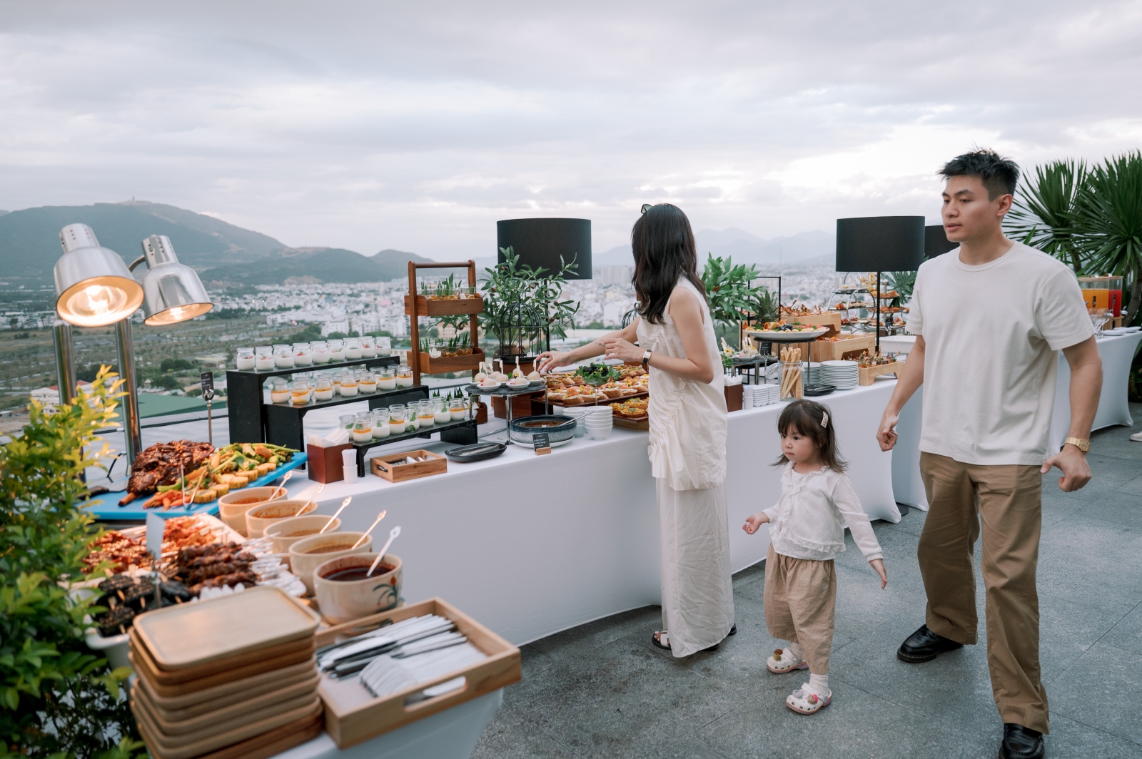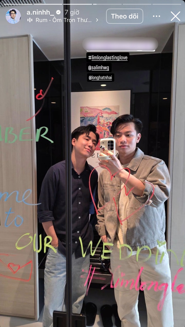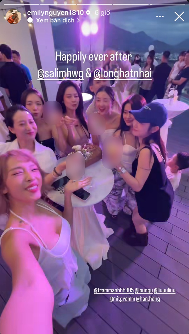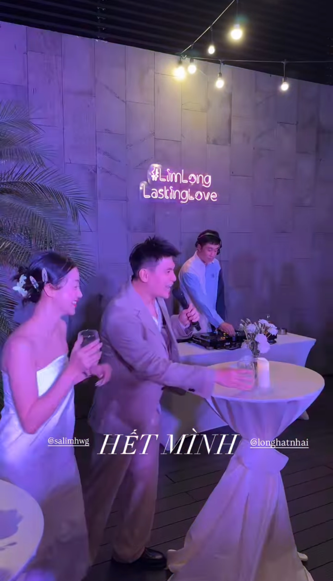 Buổi tiệc gồm bữa ăn nhẹ và âm nhạc đã diễn ra xuyên suốt buổi tối. Và tất nhiên spotlight thuộc về 2 nhân vật chính: Salim diện váy trắng thanh lịch, trong khi "chú rể" Hải Long thì diện bộ vest màu kem. Bữa tiệc cũng không thể thiếu bé Pam trong chiếc váy trắng xinh xắn, đồng hành cùng ba mẹ.