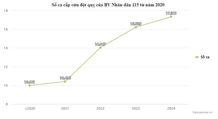 Riêng năm 2024, số bệnh nhân đột quỵ được cơ sở y tế này tiếp nhận hơn 17.000 người, cao nhất từ trước tới nay.