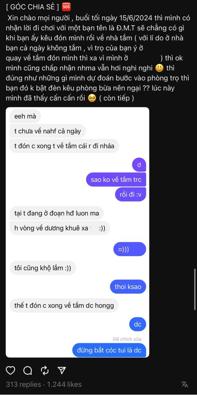 Khi sự việc kia chưa kịp lắng xuống thì chuỗi hơn 20 bài đăng "phốt" một thanh niên tên T. sinh năm 2002 lại được chia sẻ rầm rộ trên Threads. Chuỗi chia sẻ về trải nghiệm hẹn hò nhớ đời của M., và thanh niên nọ nhận được 60-70k lượt views và hàng chục đến hàng trăm bình luận trong một post, không chỉ là một drama ly kỳ mà còn là lời cảnh tỉnh đến tất cả.