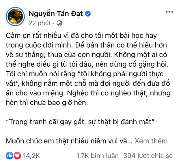 Về phần Đạt G, không hiểu vì lý do gì mà đến sáng nay (28/4), status lên tiếng đã không còn trên trang cá nhân của nam ca sĩ nữa.