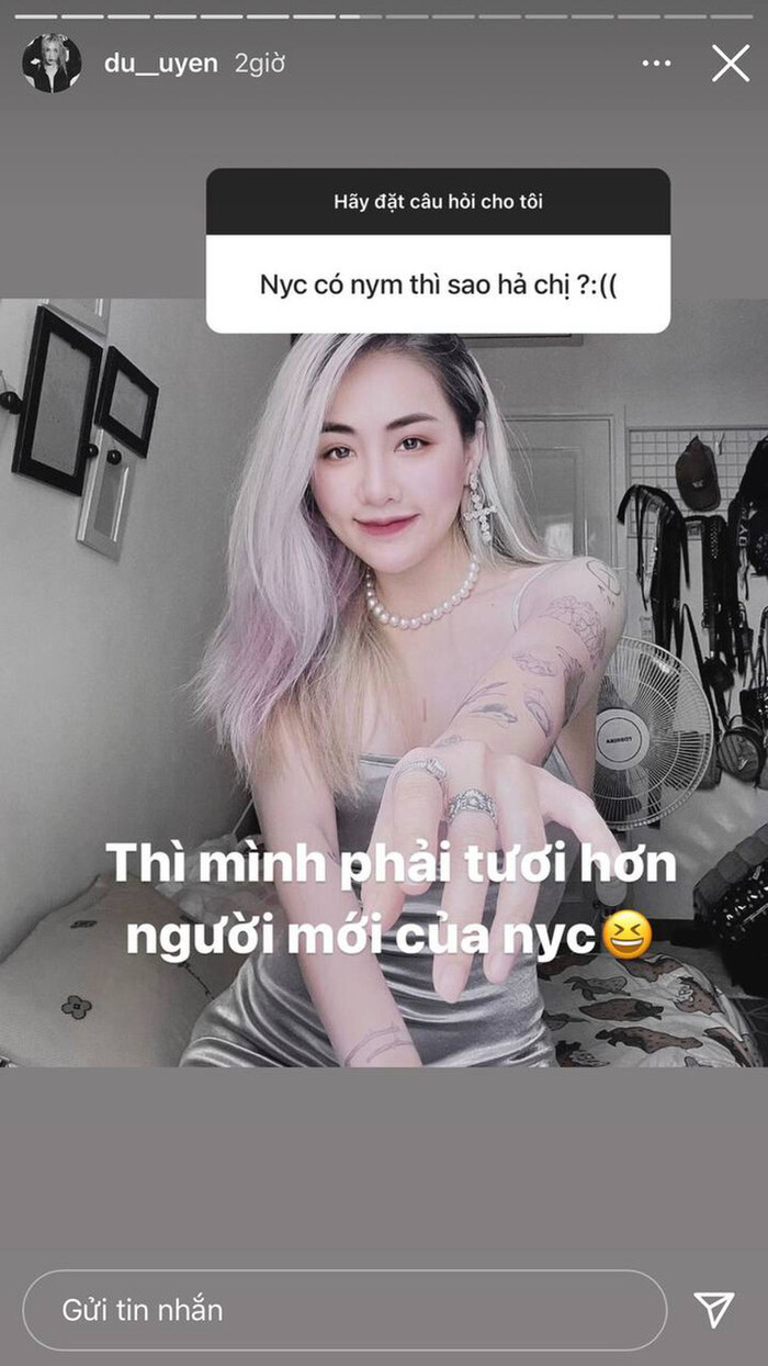Hiện tại, Đạt G đang "ấm êm" bên Cindy Lư, vợ cũ của ca sĩ Hoài Lâm. Mới đây, trong một lần Q&A với người hâm mộ trên Instagram, một người đã hỏi thẳng Du Uyên: "Người yêu cũ có người mới thì phải làm sao hả chị?".
