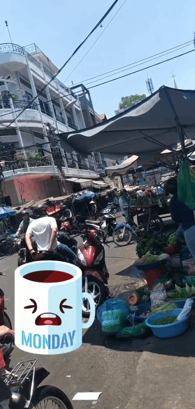 "Hôm bữa đi chợ gặp cảnh này thấy cưng quá nên quay lại. Trời trưa nóng như đổ lửa, chị người yêu đang mua đồ còn anh này lúc nào cũng lấy áo che yên sau để lúc chị người yêu lên ngồi không bị nóng.