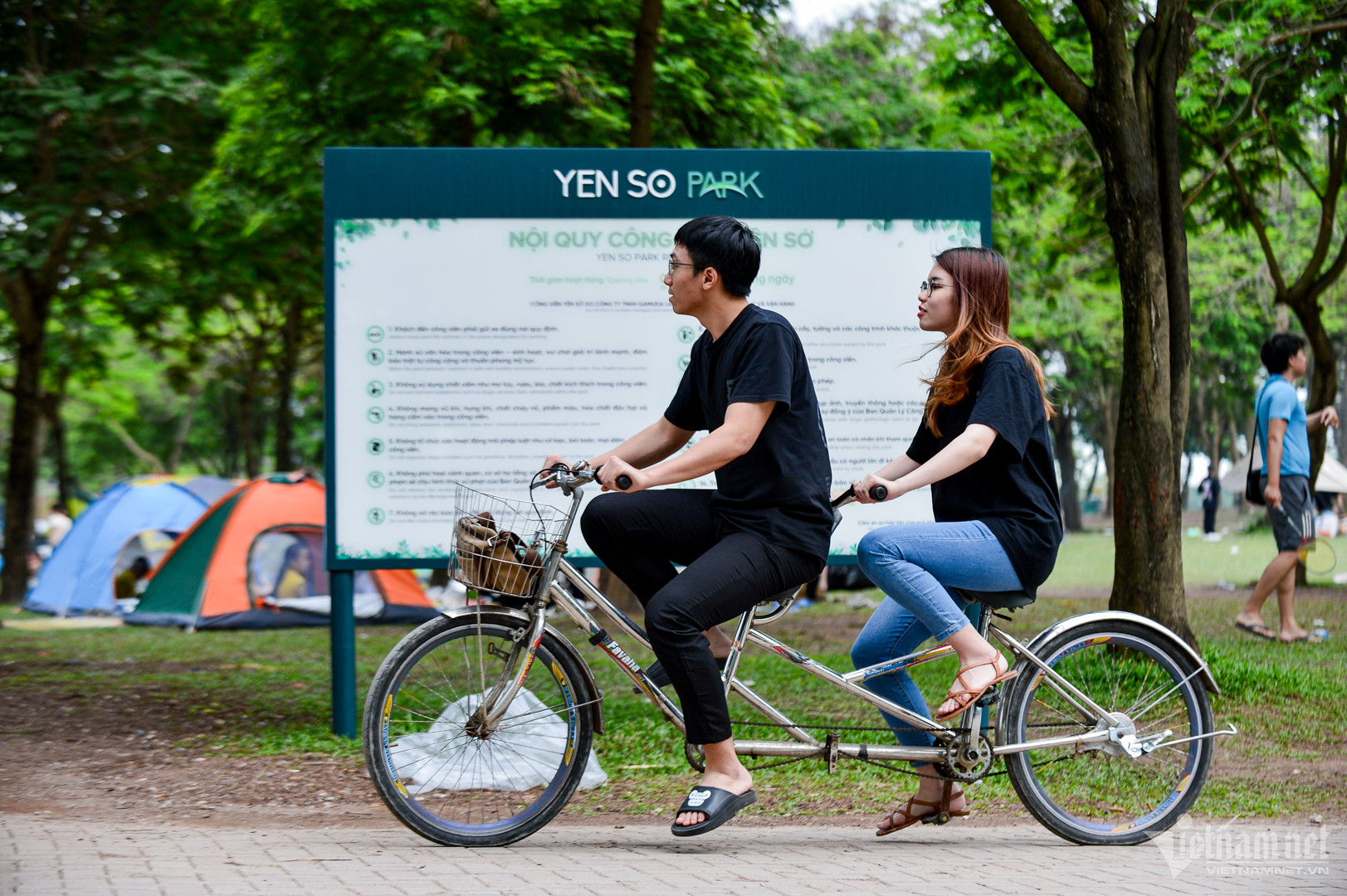 Công viên Yên Sở có khuôn viên rộng rãi cùng không khí thoáng đãng, nhiều bóng cây, luôn là địa điểm thu hút đông người mỗi cuối tuần hoặc dịp lễ.
