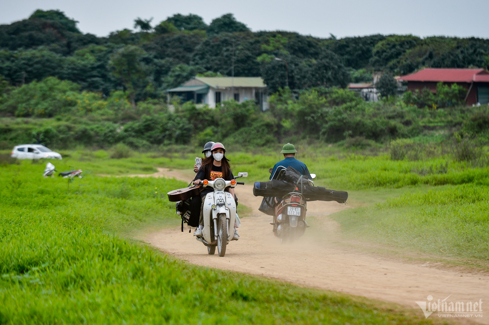 Những vị khách tới đây phần lớn là tín đồ camping, đi bằng cả ô tô lẫn xe máy. Người chuẩn bị đồ ăn, nước uống, người đảm nhiệm dựng lều trại, sắp xếp dụng cụ nấu nướng. Một số ít nhóm không có đồ thì lựa chọn hình thức thuê ở bên ngoài cổng rồi mang vào.