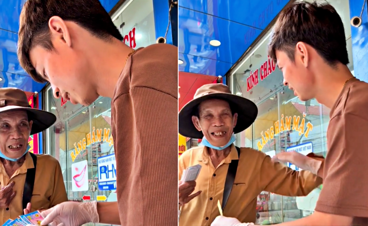 Đoạn clip trên được anh Mai Văn Quang (SN 1993, Bình Dương) ghi lại, khi tận mắt chứng kiến hành động hiếm gặp và đầy nhân văn của cụ ông bán vé số. Theo anh Quang, sự việc diễn ra tại khu chợ Quang Vinh 1, TP Tân Uyên, tỉnh Bình Dương.
