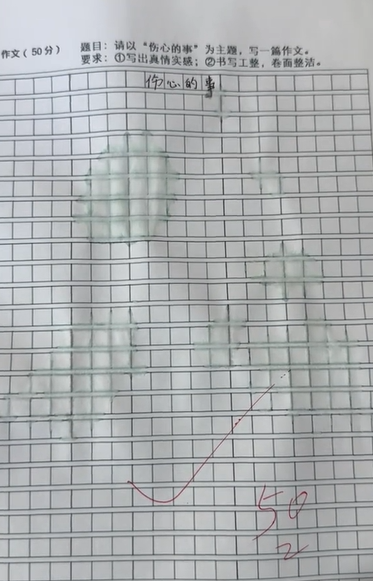Mới đây, MXH Trung Quốc xôn xao trước bài làm văn của một em học sinh tiểu học. Cụ thể, đề bài yêu cầu như sau: "Lấy 'chuyện đau lòng' làm chủ đề, viết một bài văn với yêu cầu: 1. Viết ra được cảm xúc thật; 2. Chữ viết cẩn thận, giấy viết sạch đẹp".