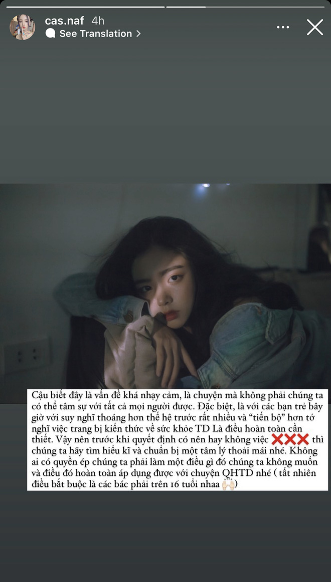 Ở story tiếp theo, Phan Hằng không quên đưa ra lời khuyên cho mọi người rằng hãy tìm hiểu thật kỹ và chuẩn bị tâm lý thoải mái trước khi quyết định có "have sex" hay không.
