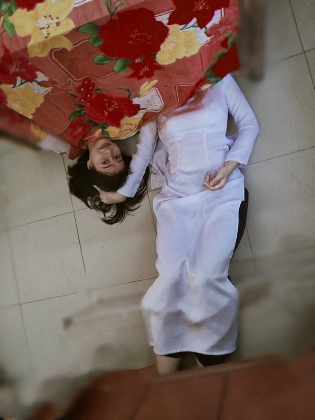 Cụ thể, trong bức ảnh, khi Hải Triều nằm dưới đất và giấu gương mặt của mình dưới gầm bàn thì BB Trần lại ló mặt ra và hoàn toàn giấu đi phần thân, tạo cảm giác phần đầu và thân của hai người là một. Hình ảnh này tuy ban đầu khiến người xem hết hồn nhưng thực chất lại vô cùng thú vị và nhanh chóng truyền cảm hứng cho hội học sinh - những người luôn được biết đến với khả năng bắt trend nhanh không ai bằng.