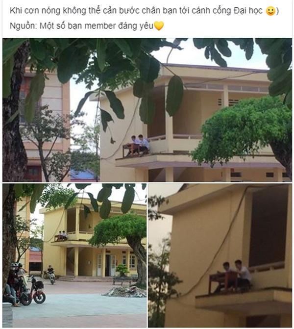Bài chia sẻ hình ảnh của 2 nam sinh kèm theo lời chú thích rằng: "Khi cơn nóng không thể cản bước chân bạn tới cánh cổng Đại học".