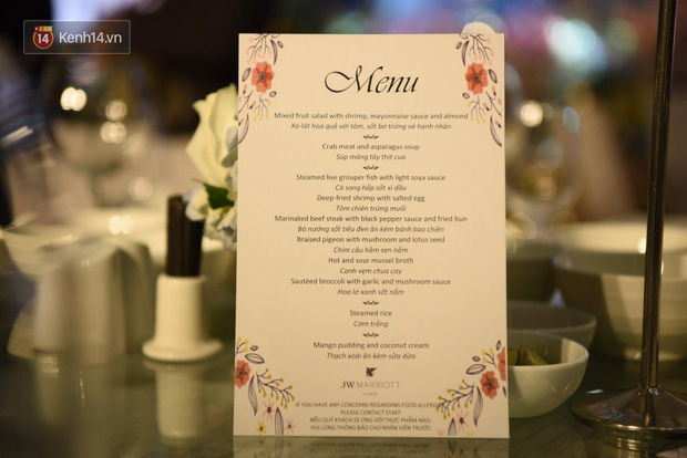 16h30. Menu tiệc cưới của Duy Mạnh - Quỳnh Anh: