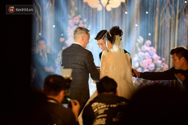 18h30: Quỳnh Anh bật khóc khi nghe lời dặn dò của bố - ông Nguyễn Giang Đông: "Dẫu có gian nan mong cả hai con vẫn bên nhau". Duy Mạnh cũng rất xúc động, rơi nước mắt tại hôn lễ. Sau đó, cặp đôi trao nhẫn và có một nụ hôn rất ngọt ngào.