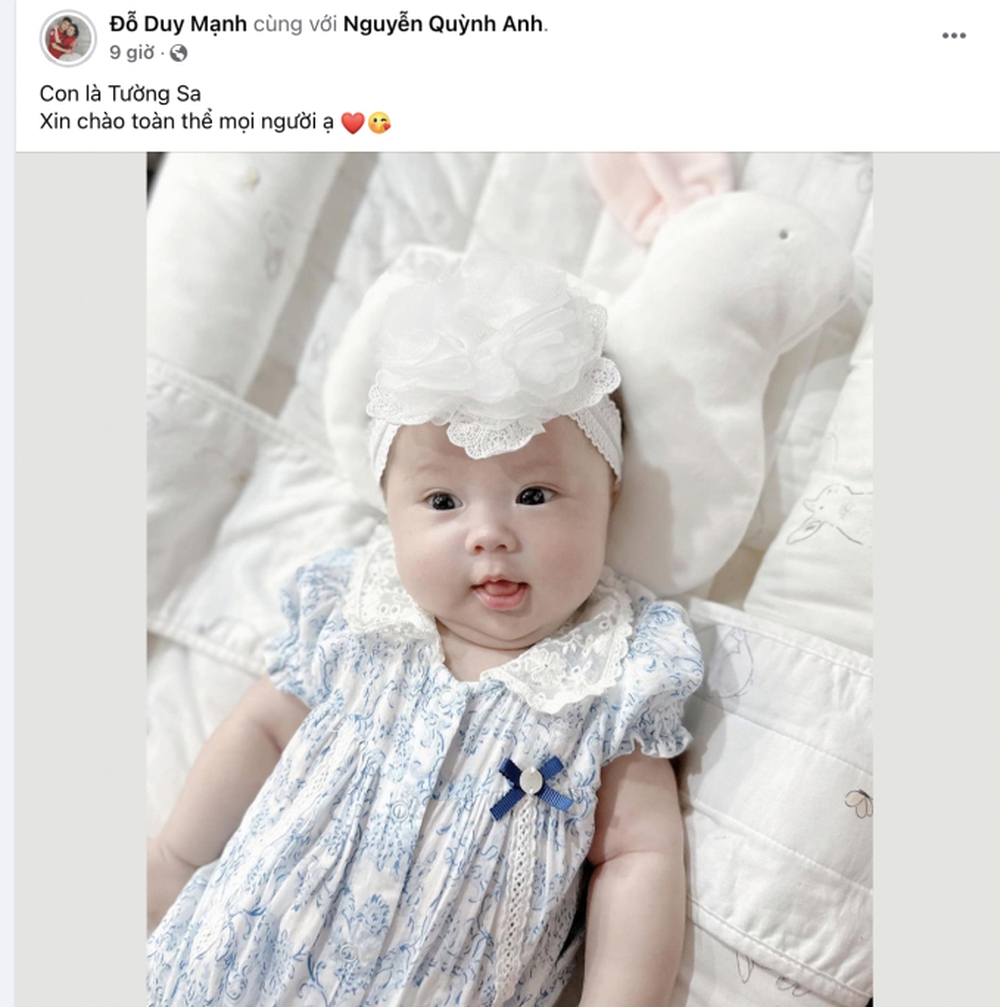 Trung vệ Đỗ Duy Mạnh và vợ là Nguyễn Quỳnh Anh đã có bé thứ 2 được gần 2 tháng. Đến tối ngày 6/10 Duy Mạnh mới lần đầu tiên công khai tên thật của con.