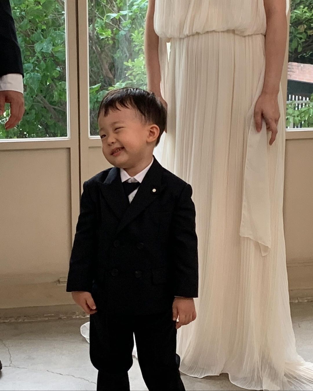Đáng nói hơn, nhân viên này chỉ cầm ở phần quai áo, cố gắng không chạm vào người Taeha. Điều này cho thấy sự tinh tế của cô bởi lẽ Taeha và gia đình đang là khách hàng ở nhà hàng và còn là người ngoại quốc.