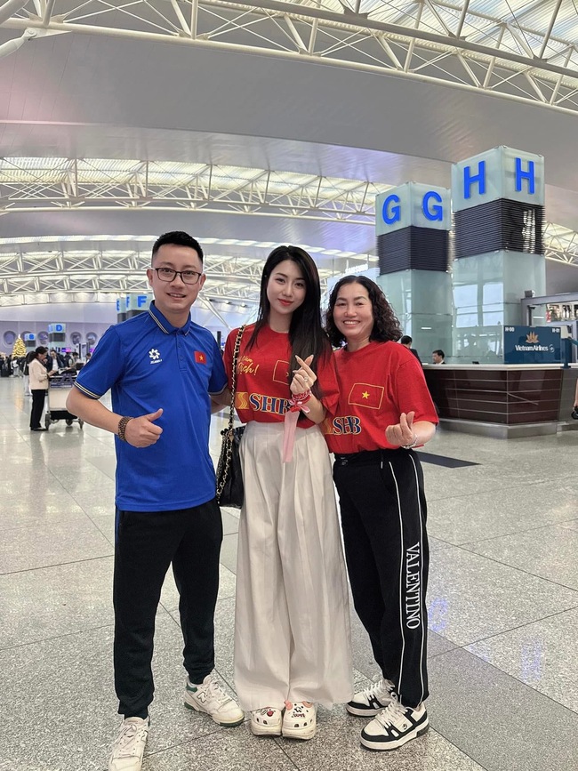 Có mặt tại sân bay Nội Bài lên đường sang Thái Lan, em gái của tiền đạo Nguyễn Văn Toàn là Nguyễn Nụ xuất hiện nổi bật. Cô nàng thu hút mọi ánh nhìn nhờ nhan sắc xinh đẹp.
