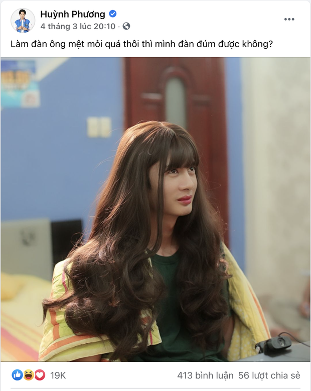 Cụ thể khi lướt Fanpage Huỳnh Phương, dân mạng ai nấy đều "đứng hình 5s" khi thấy hình ảnh cực kì menly của anh chàng đó là đội tóc giả làm con gái thật tuyệt. Bất chấp việc sở hữu 1 ngoại hình lực điền nam tính, nhờ công nghệ make up và những bộ tóc giả chuẩn không cần chỉnh. Trông Huỳnh Phương chẳng khác gì 1 cô gái thiệt là bao.