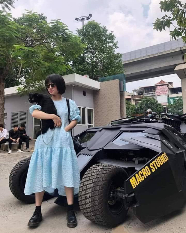 Trong 2 bức ảnh, Đỗ Tình ôm một chú mèo đứng thả dáng bên cạnh chiếc xe Batmobile nhìn khá hầm hố, thần thái của cô bạn cũng rất chanh sả.