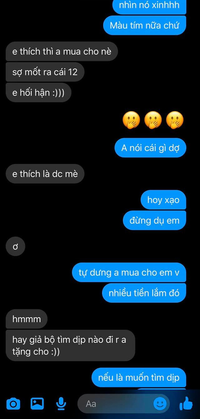 Về phần mình, tui cũng không có đòi bạn mua điện thoại vì tui cũng đang xài 1 chiếc XS Max và cũng đang thấy ổn. Nhưng mà tự dưng có người chiều chuộng tui như vậy, tui sẽ hư mất. Nói chung là tui rất vui nên muốn chia sẻ với mọi người thôi. Cảm ơn Tinder, cảm ơn luôn cậu bạn trai".