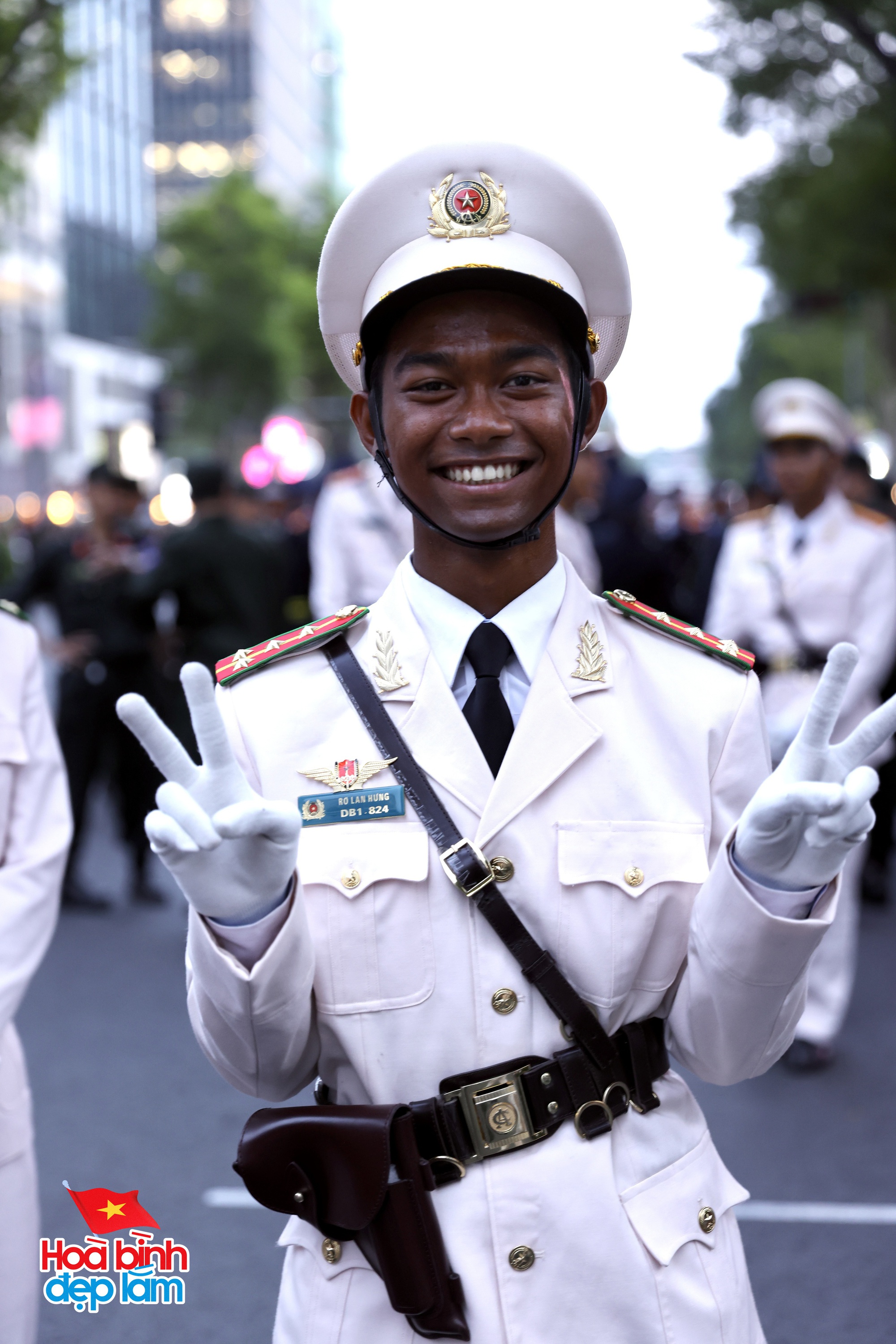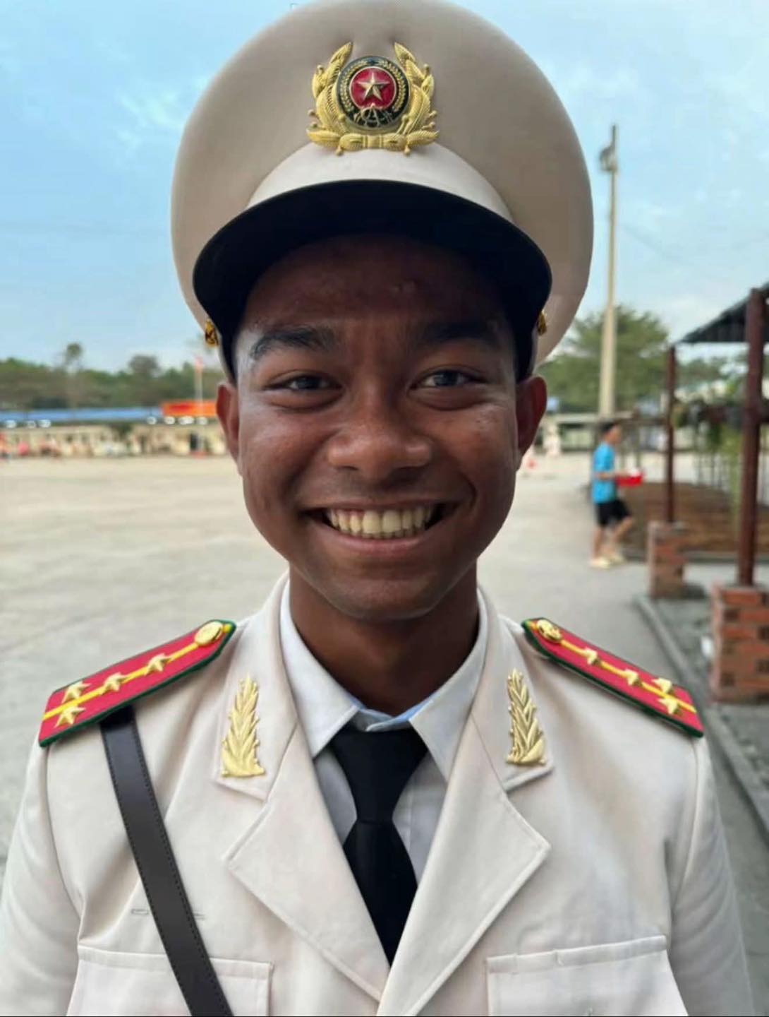 Ngay sau khi các chiến sĩ hoàn thành sơ duyệt, chúng tôi đã có cuộc trò chuyện với chiến sĩ Rơ Lan Hưng (sinh năm 2005, dân tộc Gia Rai đến từ Gia Lai) - thuộc Khối nam Sĩ quan Công an TP.HCM. Anh chàng khá nổi tiếng với cộng đồng mạng vì “nụ cười bắt nắng” dễ thương.