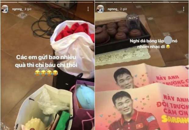 Cụ thể Nhuệ Giang đã đem những món quà của fan tặng Xuân Trường đăng lên trang cá nhân với lời lẽ khó nghe. Khi fan tặng Xuân Trường hộp kẹo cùng lời nhắn dễ thương: "Anh cho cả đội ăn với nhé. Yêu các anh!", Nhuệ Giang đã đăng ảnh kèm caption: "Chị ăn hộ được". Không những thế cô nàng còn mỉa mai: "Các em gửi bao nhiêu quà thì chỉ báu chị thôi".