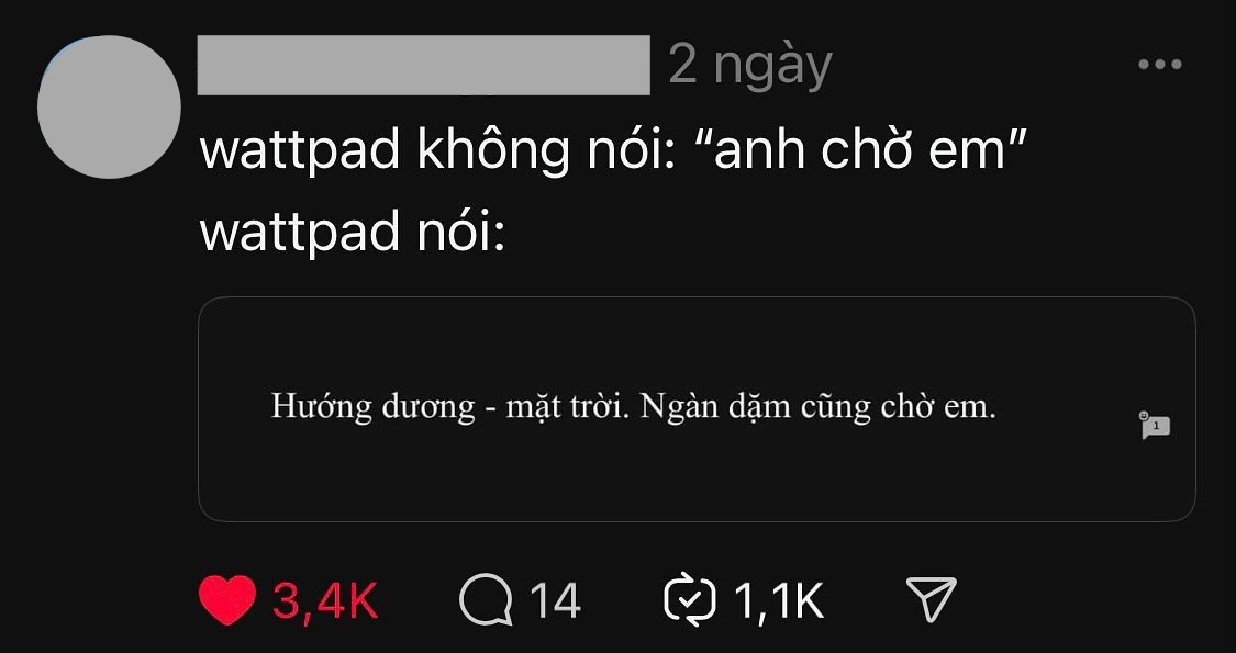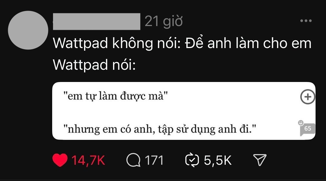 - Cái trend Wattpad nói làm tôi nhận ra tiếng Việt đẹp và tình tứ lắm luôn. Đọc mà phải trầm trồ.