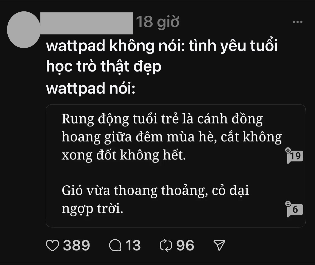 - Trend Wattpad 10 điểm không có nhưng luôn. Đọc xong thấy yêu môn Văn dữ dội.
