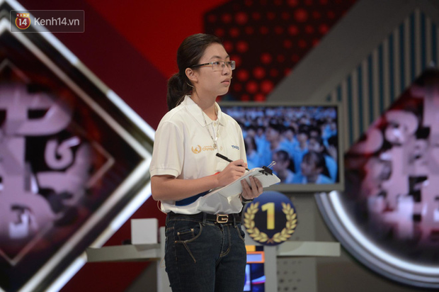 Cụ thể, đó là khoảnh khắc cô bạn chỉ tay lên trời khi giành chiến thắng hoặc thể hiện cảm xúc vui mừng quá mức khi nghe đối thủ Dũng Trí tâm sự rằng không thể giành được vòng nguyệt quế nên chọn gói câu hỏi an toàn trong phần thi Về đích cuối cùng.