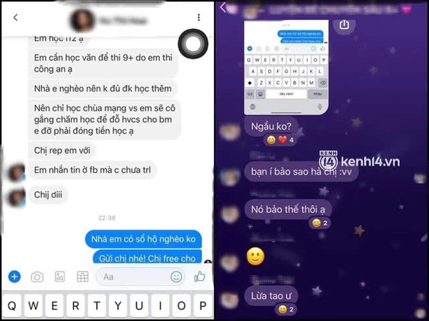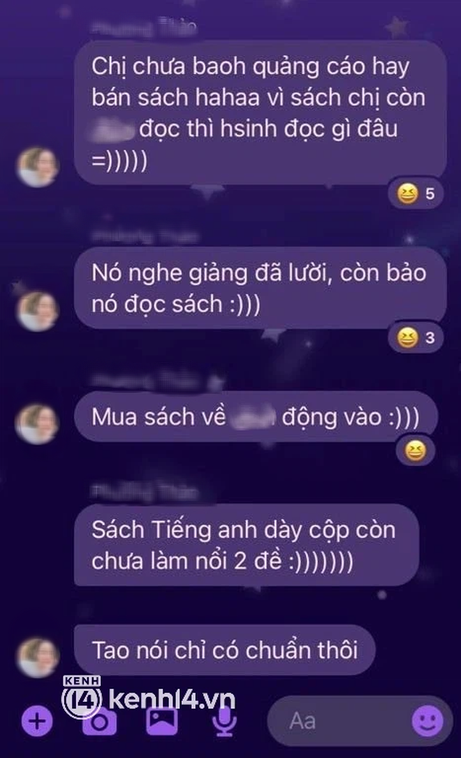 Học sinh bên ngoài xin được học thêm free (do nhà nghèo), P.T nhắn tin gay gắt. Sau đó lại ác ý gửi vào nhóm chat cho HS lớp mình cùng bình phẩm.