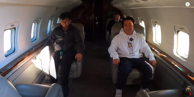 "Bữa trước 2 anh em đi máy bay tư nhân giá 11000 USD/ngày thử xem sao, ai ngờ máy bay nhỏ quá, không thoải mái nên hôm nay quyết định mua máy bay to gấp đôi, giá tiền cũng gấp đôi: 5 triệu đô ~ 115 tỷ VNĐ. Đây là chiếc có thể bay về Việt Nam được luôn, nên sang năm mình về Việt Nam khỏi tốn tiền mua vé máy bay haha" - Khoa Pug tiết lộ.