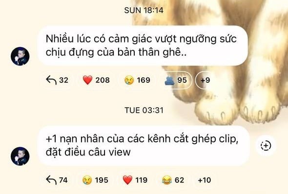 Vào rạng sáng ngày 6/5, Gil Lê khiến fan bất ngờ khi để lại một dòng trạng thái đầy ẩn ý trong kênh chat riêng có hơn 18.000 thành viên: “+1 nạn nhân của các kênh cắt ghép clip, đặt điều câu view”.