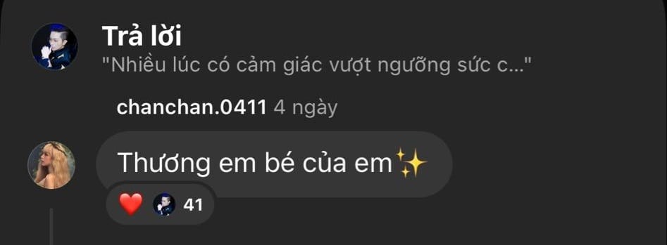 Đáng chú ý, Xoài Non (Phạm Thùy Trang, sinh năm 2002) – bạn gái hiện tại của Gil Lê – cũng xuất hiện trong cuộc trò chuyện và gửi lời động viên: “Thương em bé của em”, thể hiện sự gắn bó và quan tâm dành cho đối phương.