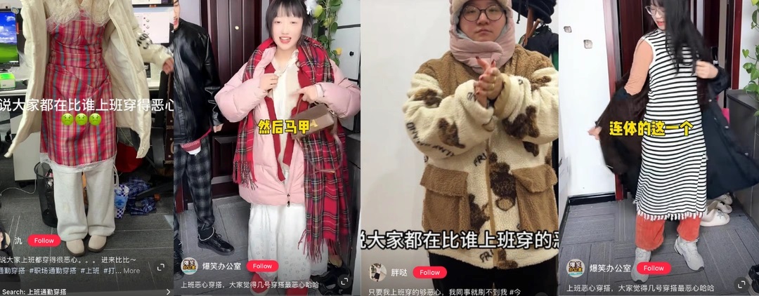 Xu hướng ăn mặc xấu này được giới trẻ Trung Quốc gọi là "trang phục công sở xấu xí". Nó trở thành một trend rất hot trên khắp các nền tảng mạng xã hội kể từ tháng 3 năm nay.