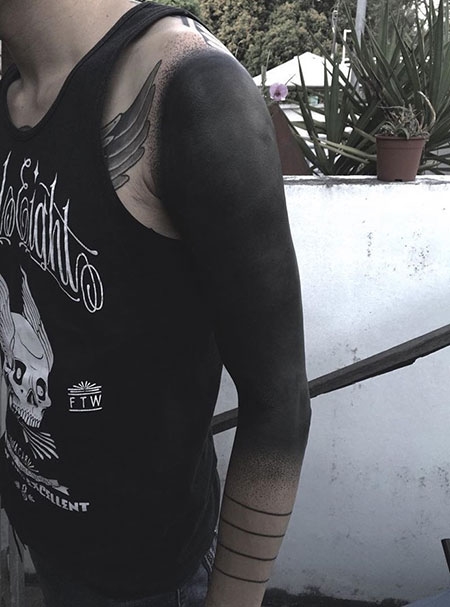 Ngoài kiểu ghi dấu một mảng đen lớn, mọi người cũng có thể xen kẽ vài họa tiết nhỏ trên nền da tự nhiên với phần da được xăm đen.
