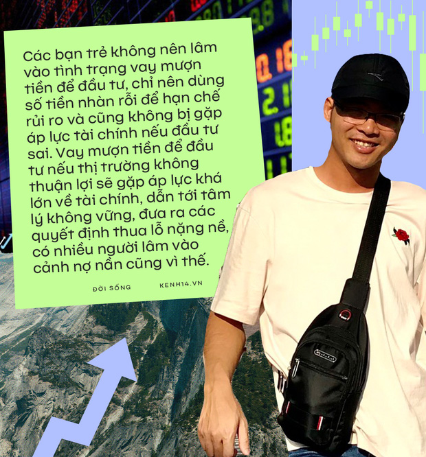 Với mình, các bạn trẻ không nên lâm vào tình trạng vay mượn tiền để đầu tư, chỉ nên dùng số tiền nhàn rỗi để hạn chế rủi ro và cũng không bị gặp áp lực tài chính nếu đầu tư sai. Vay mượn tiền để đầu tư nếu thị trường không thuận lợi sẽ gặp áp lực khá lớn về tài chính, dẫn tới tâm lý không vững, đưa ra các quyết định thua lỗ nặng nề, có nhiều người lâm vào cảnh nợ nần cũng vì thế.